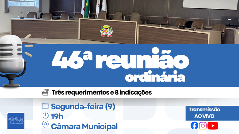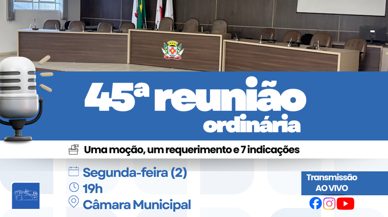 Pauta da reunião inclui propostas sobre acessibilidade, drenagem urbana, terminal bancário 24h e melhorias em bairros do município.